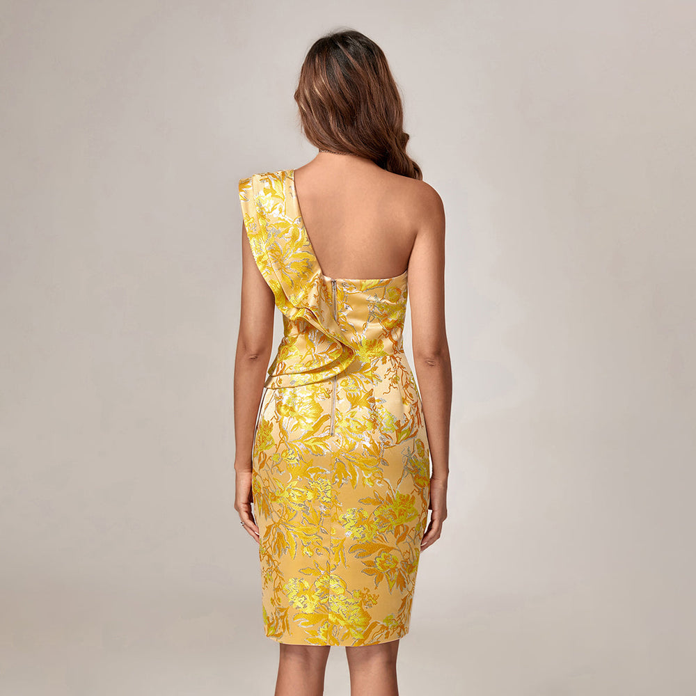 This One Shoulder Sleeveless Frill Bodycon Dress is perfect for making a statement. Featuring a one shoulder design and frill detailing, it's the perfect addition to your wardrobe. With its timeless shape and flattering fit, it's sure to turn heads.