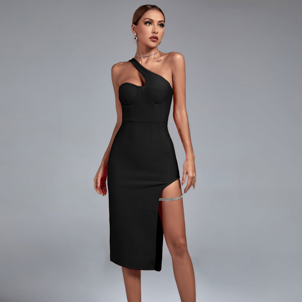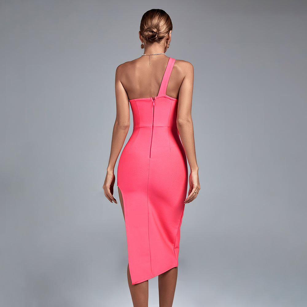 Be fierce and flaunt your style with the One Shoulder Sleeveless Midi Bandage Dress. Cut to perfection, this sleek sleeveless midi dress is designed to highlight your curves and make a statement! It's time to turn heads and make a statement - the perfect dress for the modern stylish woman!