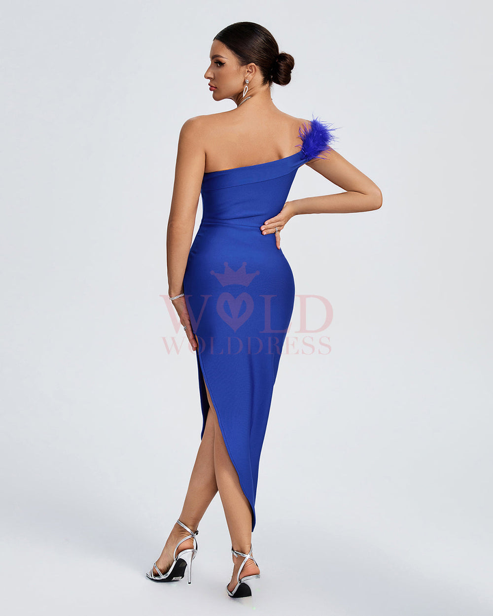 Elevate your style in our luxurious Off Shoulder Feather Trim Bandage Dress. The elegant blue hue complements the feather trim detailing, creating a sophisticated and exclusive look that is sure to turn heads. Made from high-quality bandage material, this dress hugs your silhouette for a perfect fit.