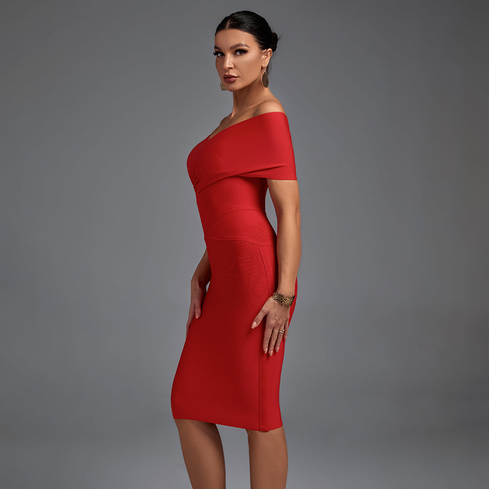 Make an unmistakably elegant statement in this luxurious off-shoulder bandage dress. Its distinctive features of short sleeves and body-hugging silhouette create a timelessly chic look that you need in your wardrobe. Truly timeless and exquisite, this dress is perfect for any special occasion.
