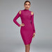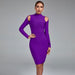 Feel sophisticated and stylish in this luxurious cut out bandage dress. Crafted from high-quality fabric with long sleeves and an elegant high neck, this dress speaks of taste and class. Its flattering fit and cut out accents make it a perfect choice for special occasions.