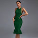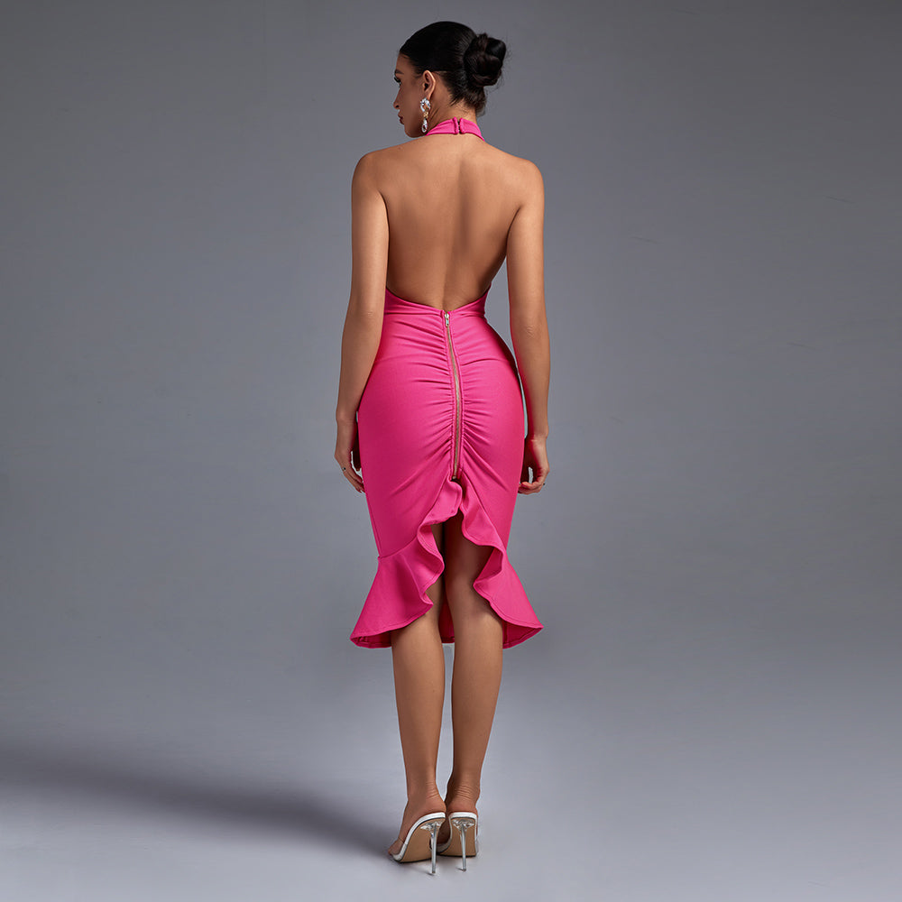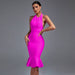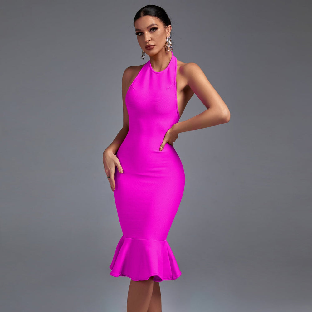 Make a stunning entrance in this awe-inspiring Halter Sleeveless Fishtail Midi Bandage Dress. This classic yet modern evening look is crafted from luxurious bandage fabric with a flattering fishtail silhouette and halter neckline. Artesian cutting-edge style and fashion-forward elegance combine for a timeless look that will turn heads.