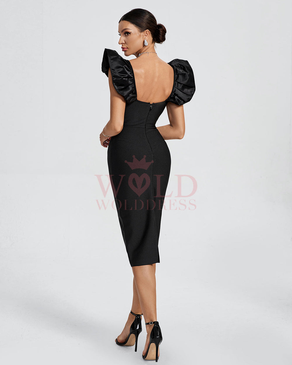 Indulge in elegance with our Sweetheart Bubble Sleeve Midi Bandage Dress. Featuring a romantic sweetheart neckline and charming bubble sleeves, this dress highlights your curves in all the right places. The bandage material provides a flattering fit and the midi length adds a touch of sophistication. Elevate your style game and make a statement with this luxurious dress.