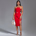 Showcase your effortless sense of style in this timeless strapless ruffle midi bandage dress. Crafted with an alluring silhouette, this chic dress will instantly elevate your look and make you stand out in any crowd. Its classic strapless design and flattering mid-length hem keep your look timeless yet modern, while the ruffled detail adds a luxurious touch. Perfect for any special occasion, this exquisite dress will add a dash of sophisticated glamour to your wardrobe.