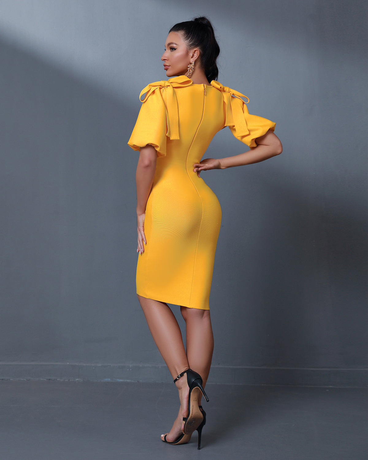Flaunt your sophistication in this Puff-Sleeve Cut Out Bandage Dress. Sleek cutouts show a hint of your own unique style, while a classic puff-sleeve cut lends an air of timeless elegance. Slip into this dress, and you are ready to make a luxurious statement wherever you go.