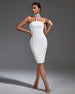 Feel like an angel in white with this stunning halter dress. Delicately crafted with gorgeous bandage material, it's perfect for any special occasion. Accentuate your curves while commanding attention with bold, beautiful style.