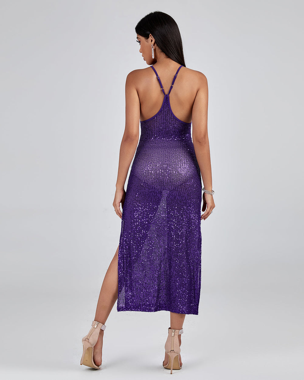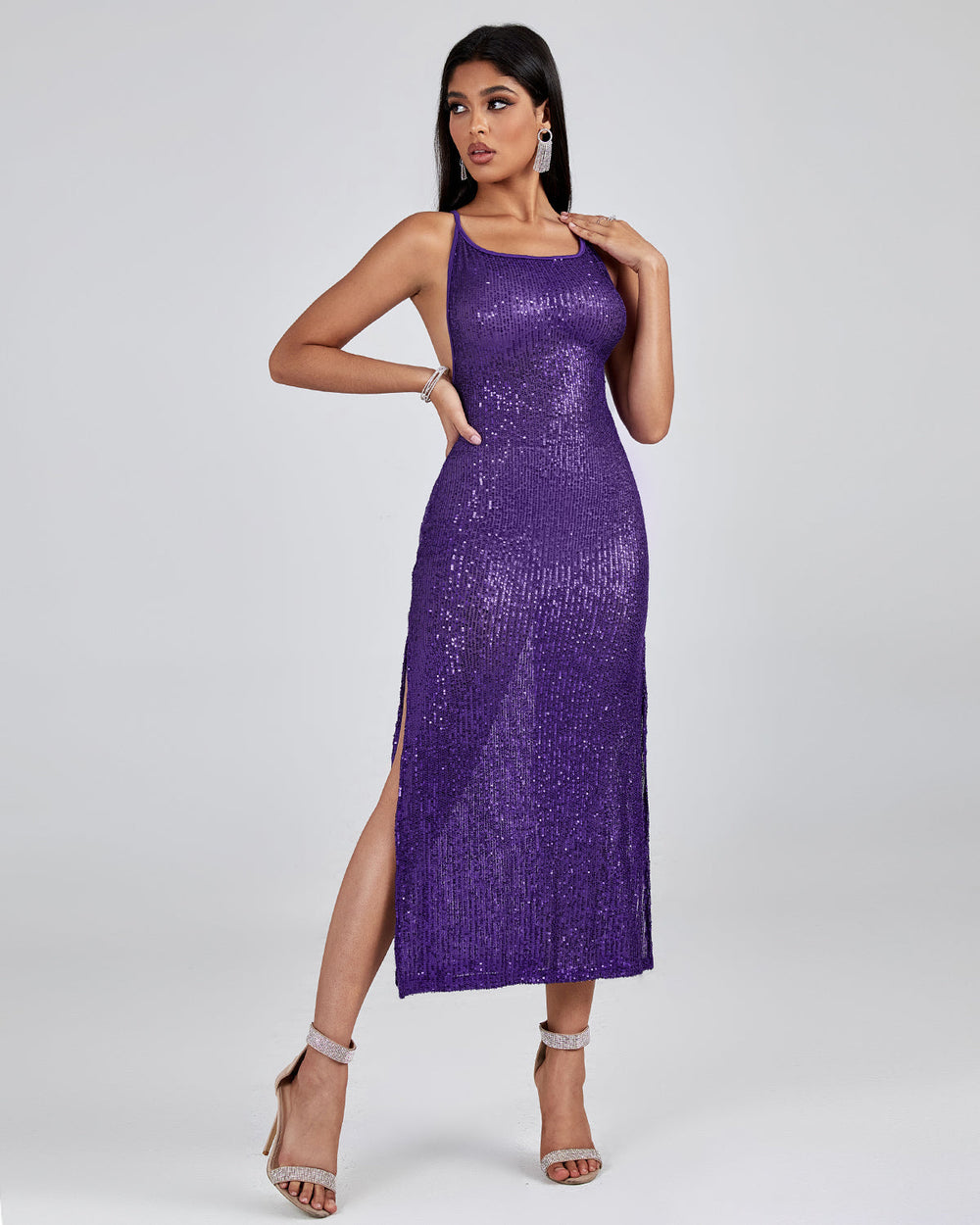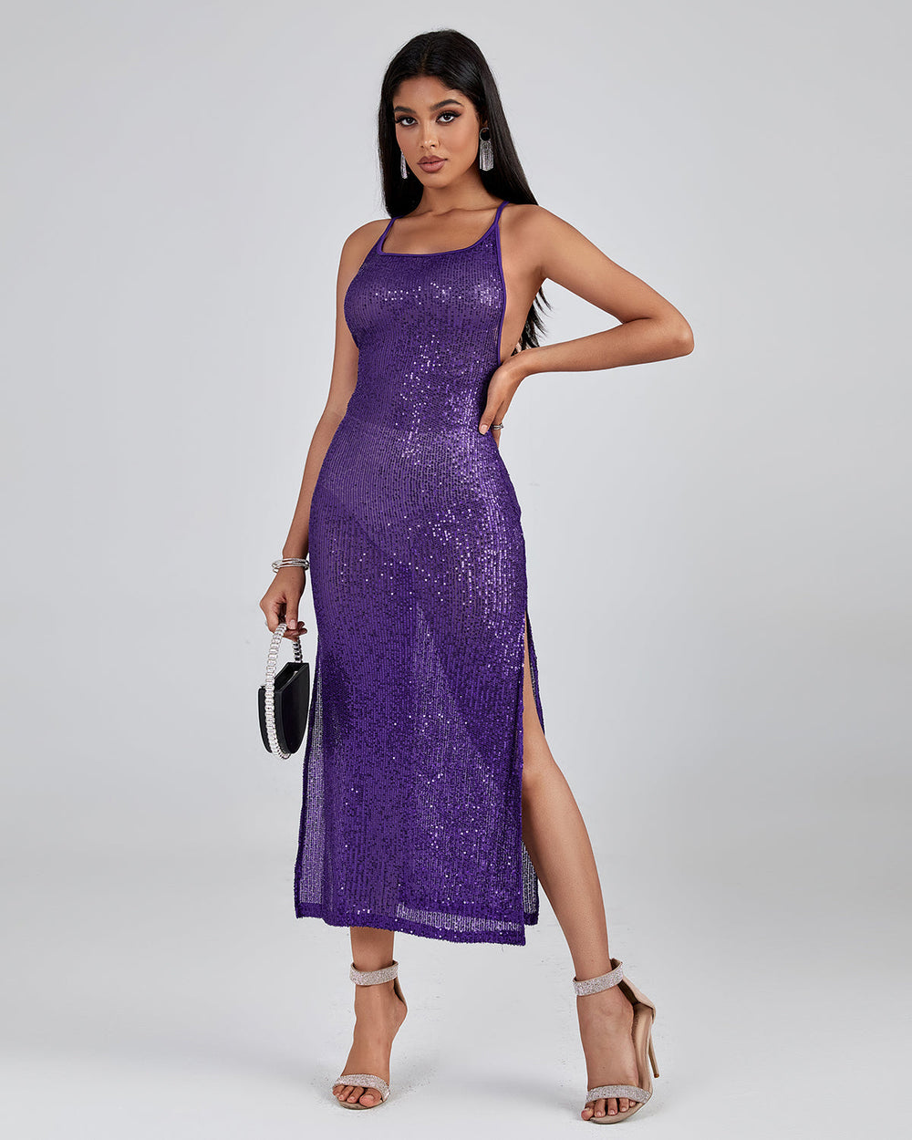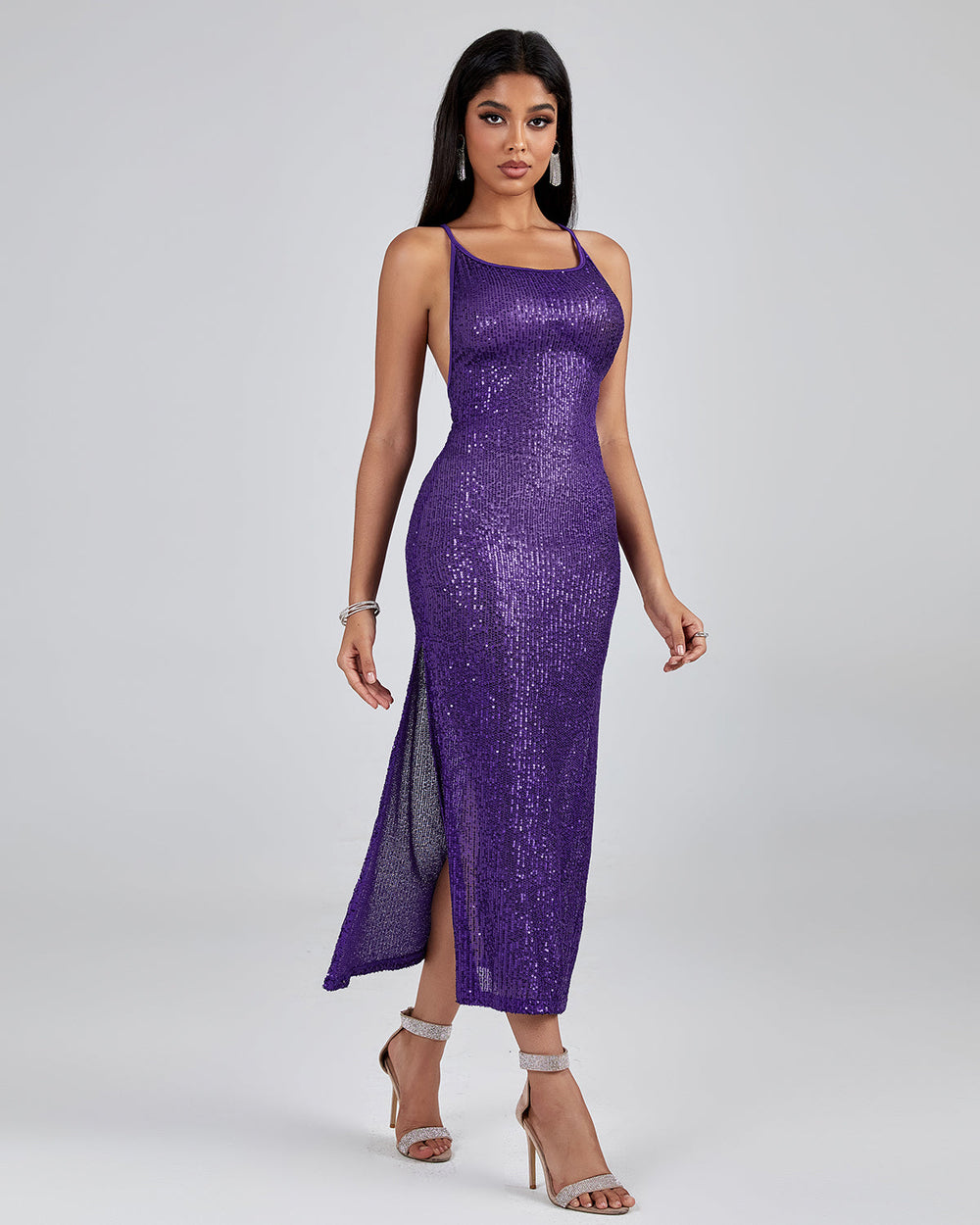 Our Purple Sequin Strap Midi Dress is the perfect combination of style and comfort. Crafted from lightweight and breathable material, this dress is sure to be your go-to for any occasion. The purple sequins add a touch of luxury to the dress. The adjustable straps also provide a comfortable fit. Make a statement with this elegant and sophisticated dress.