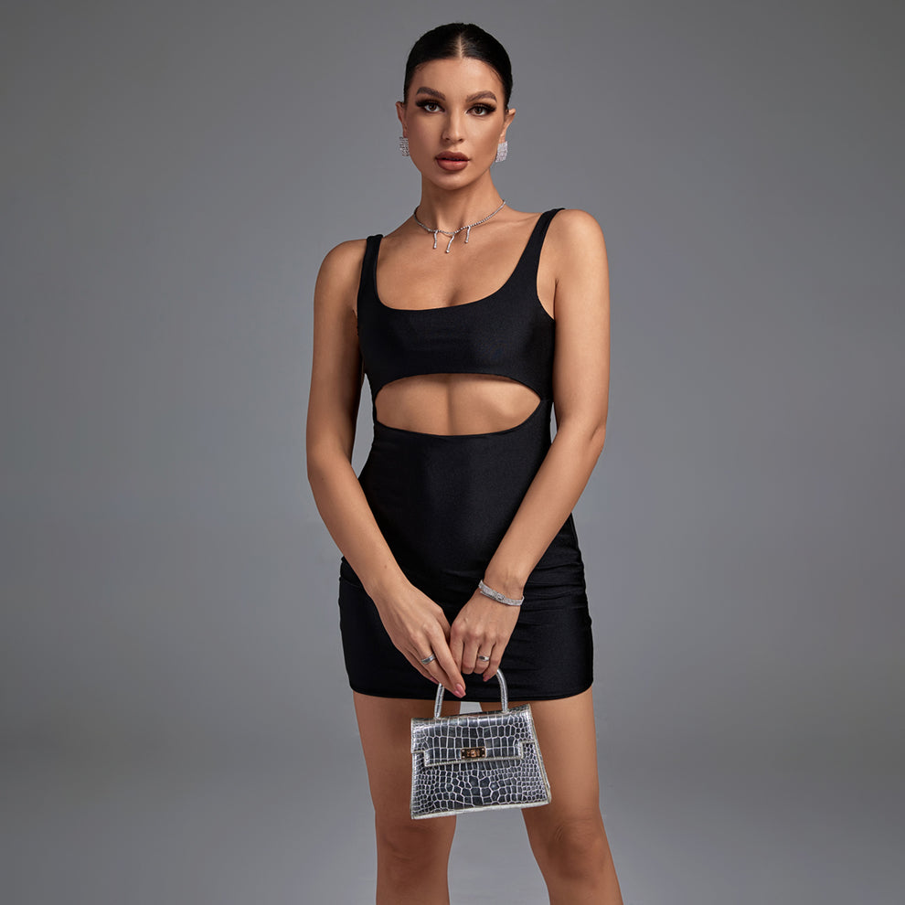 Look FLAWLESS in this cute Round Neck Sleeveless Cut Out Mini Bodycon Dress! With a seductive round neckline, sultry cut-out details, and mini-dress length, you'll be turning heads wherever you go. Be the envy of all your friends and strut your stuff in this dress!