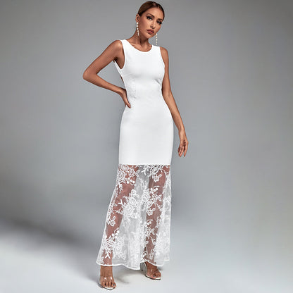 Round Neck Sleeveless Maxi Lace Bandage Dress