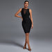 Step out in style in this round neck sleeveless mesh mini bandage dress. Crafted from a luxurious combination of materials, this dress is designed to look elegant and sophisticated while providing unparalleled comfort. It features a slim fit perfect for any occasion, and a mesh pattern for a subtle hint of intrigue. Turn heads in this exquisite mini dress.