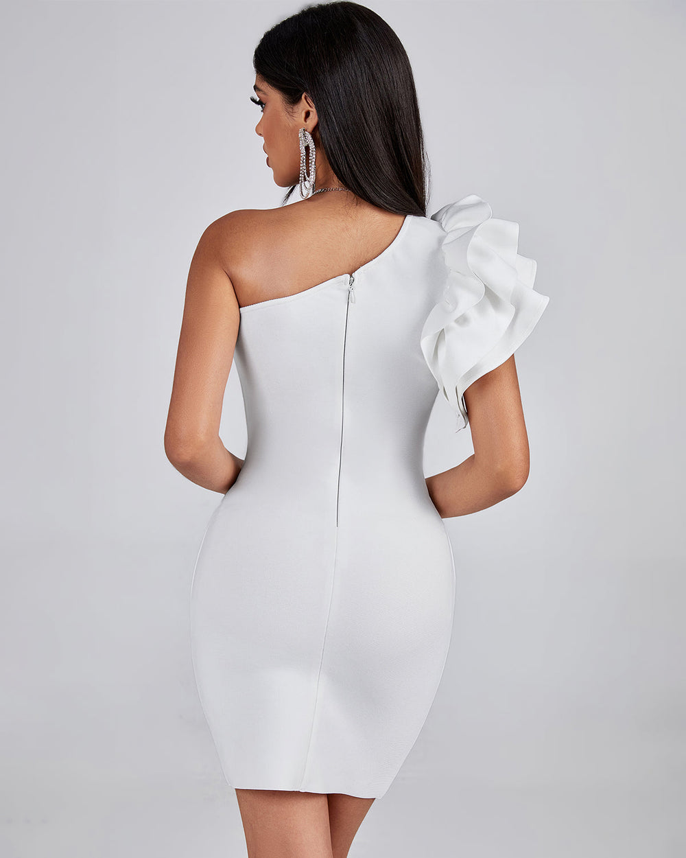 Update your wardrobe with our stylish Ruffle One Shoulder Mini Bandage Dress. Made with high-quality materials, this dress features a unique one shoulder design with ruffle detailing. Perfect for any occasion, it will make you stand out with its flattering fit and eye-catching style. Revamp your look today!