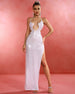 Make a remarkable statement at your next formal event in this exquisite sequined cut out evening gown. The sparkling sequins and daring cut out detailing guarantee a luxurious look that's sure to turn heads. Feel like a true fashion icon in this upscale special occasion dress.