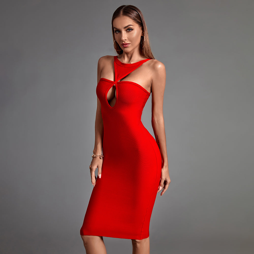 This timeless Sleeveless Cut Out Over Knee Bandage Dress is designed with luxurious details to elevate your wardrobe. Crafted with a flattering fit and iridescent fabric, you'll be sure to make an elegant statement in this sophisticated, sleek dress. Perfect for special occasions or everyday looks, this dress styles effortlessly with high heels and minimal or statement jewelry.