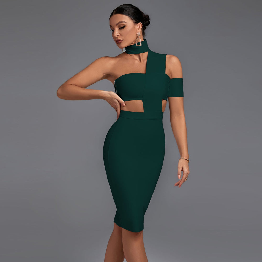 Experience elegance and timeless style with the Halter Sleeveless Cut-out Midi Bandage Dress. This midi-length dress features a flattering cut-out design that will make you stand out in any crowd and a halter neckline that adds a touch of sophistication. Step out in confidence and make a statement in this stylish dress.