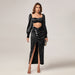 This Square Neck Backless Ruched Slit Satin Two-Piece Set is perfect for special occasions. Made from high quality satin fabric, this two-piece set provides a beautiful silhouette and offers excellent coverage with its square neckline and backless design. The ruched detailing on the top and skirt adds texture to the look and the long slit skirt adds movement and drama. Perfect for every formal event, this two-piece set is sure to turn heads.
