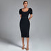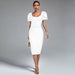 Tackle everyday in style with this Square Collar Short Sleeve Midi Bandage Dress. Its figure-hugging fit and bold colors combine for a look that will have you feeling empowered and ready to conquer the day. Take the plunge and dare to stand out!