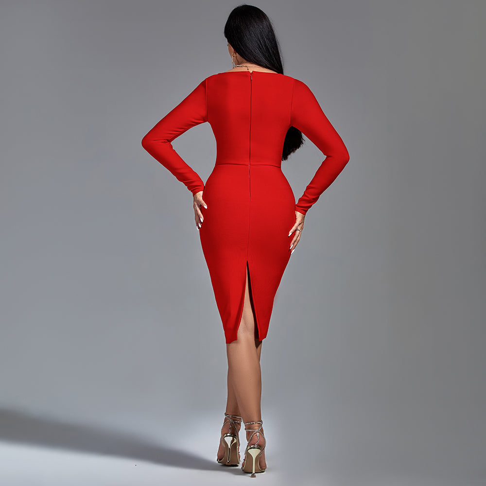 Look chic and stylish in this Square Neck Long Sleeve Midi Bandage Dress. Perfect for any occasion, this dress will flatter your figure and give you a standout look. Featuring stretchy fabric and comfortable fit, it's a great choice for any fashionista.