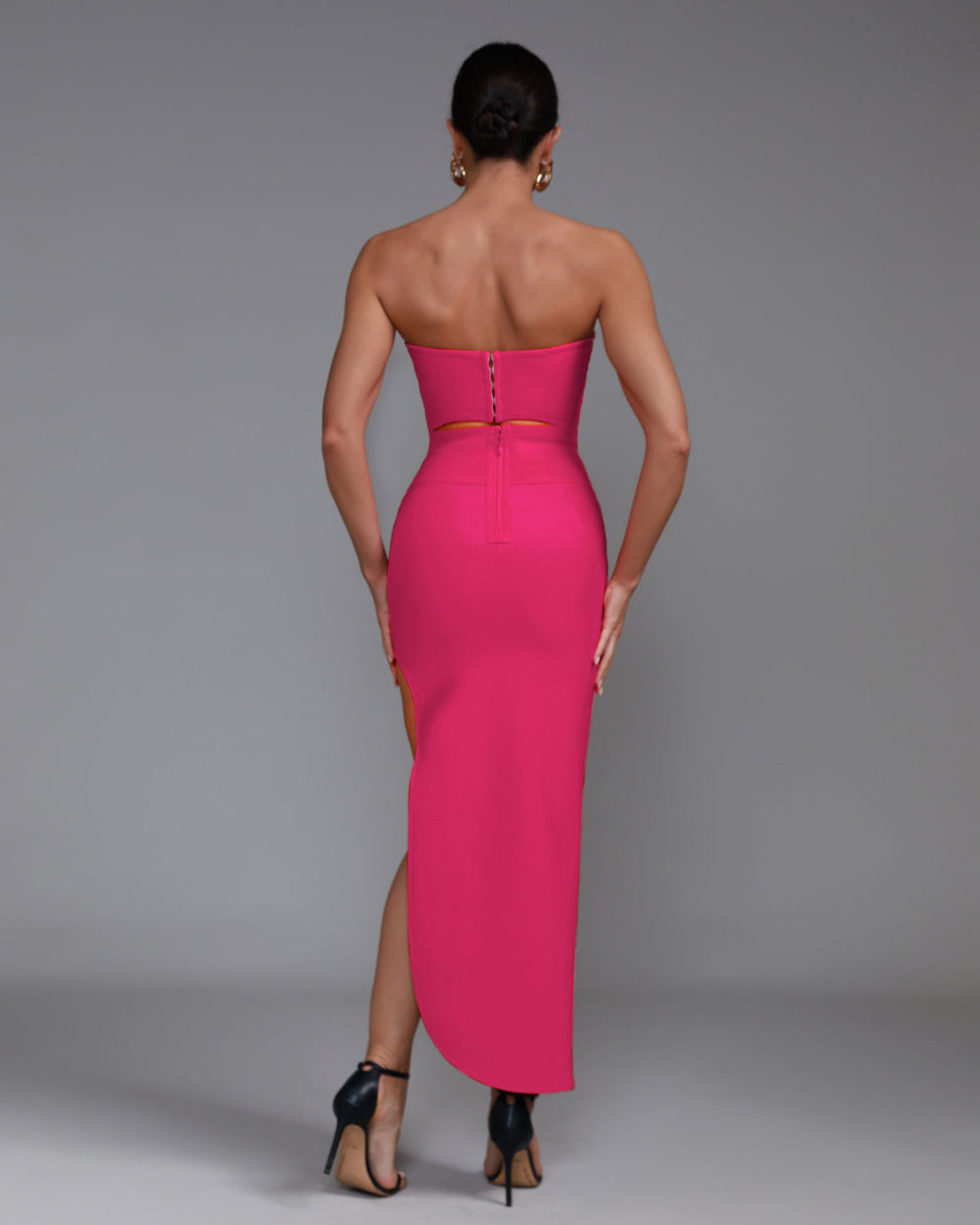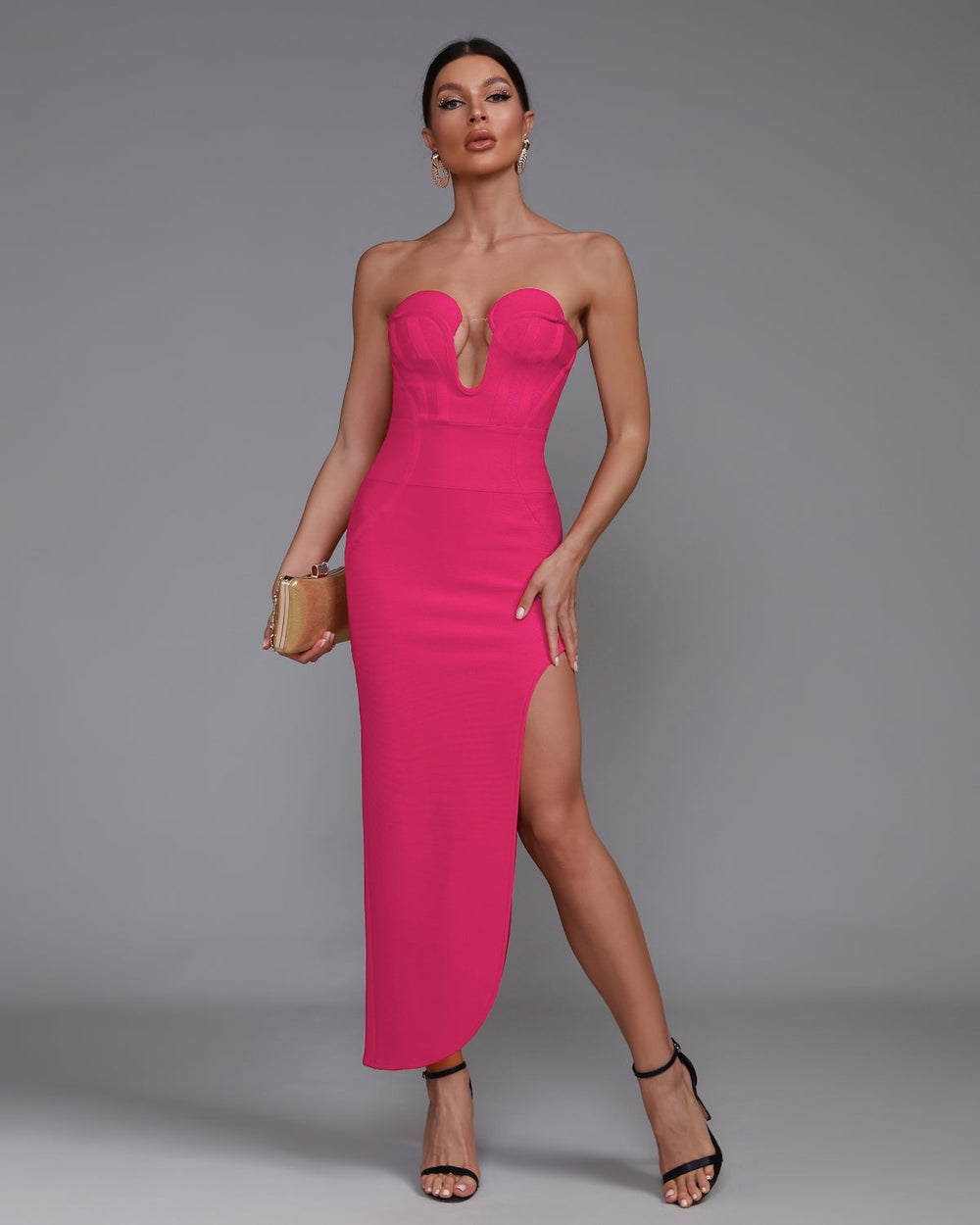 Step out in style with this Strapless Corset Maxi Bandage Dress. Crafted with an intricate strapless corset design and ultra-luxurious stretchy fabric, this dress is sure to mesmerize. It offers you a perfect figure-hugging fit, accentuating your curves for a stunning look. Step out in confidence in this fashion statement and shine like a diamond.