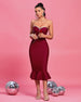 This sleek bandage dress is sure to make a splash at your next event! Embellished with sparkling crystals, it's sure to make heads turn! Plus, the midi length and fishtail cut will give you the perfect twirl-worthy look! Shine like the star you are! ??