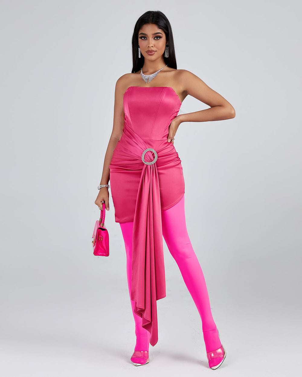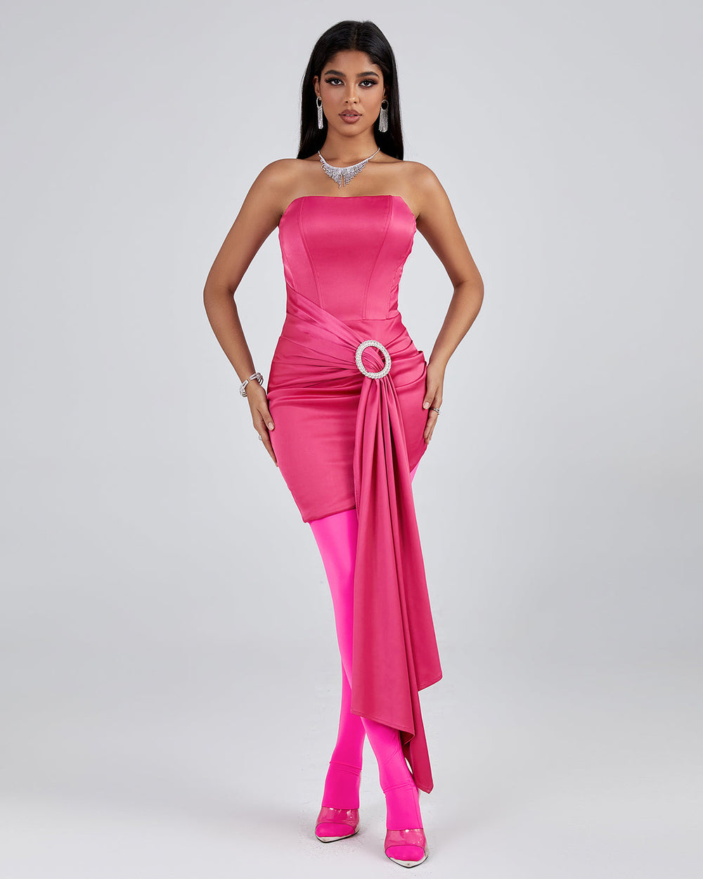 Discover luxury and sophistication in this exquisite Strapless Draped Corset Dress. Crafted from a silken fabric, the dress forms a corset silhouette, with an elegant draped overlay accentuating the waist. This beautiful piece is sure to make a lasting impression.
