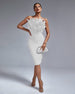 Elevate your style with this eye-catching strapless mid-length dress. Crafted from a figure-flattering combination of bandage fabric and feathers, this luxurious piece will make you feel glamorous and sophisticated at any event. With a look that exudes elegance and grace, you'll make an unforgettable impression.