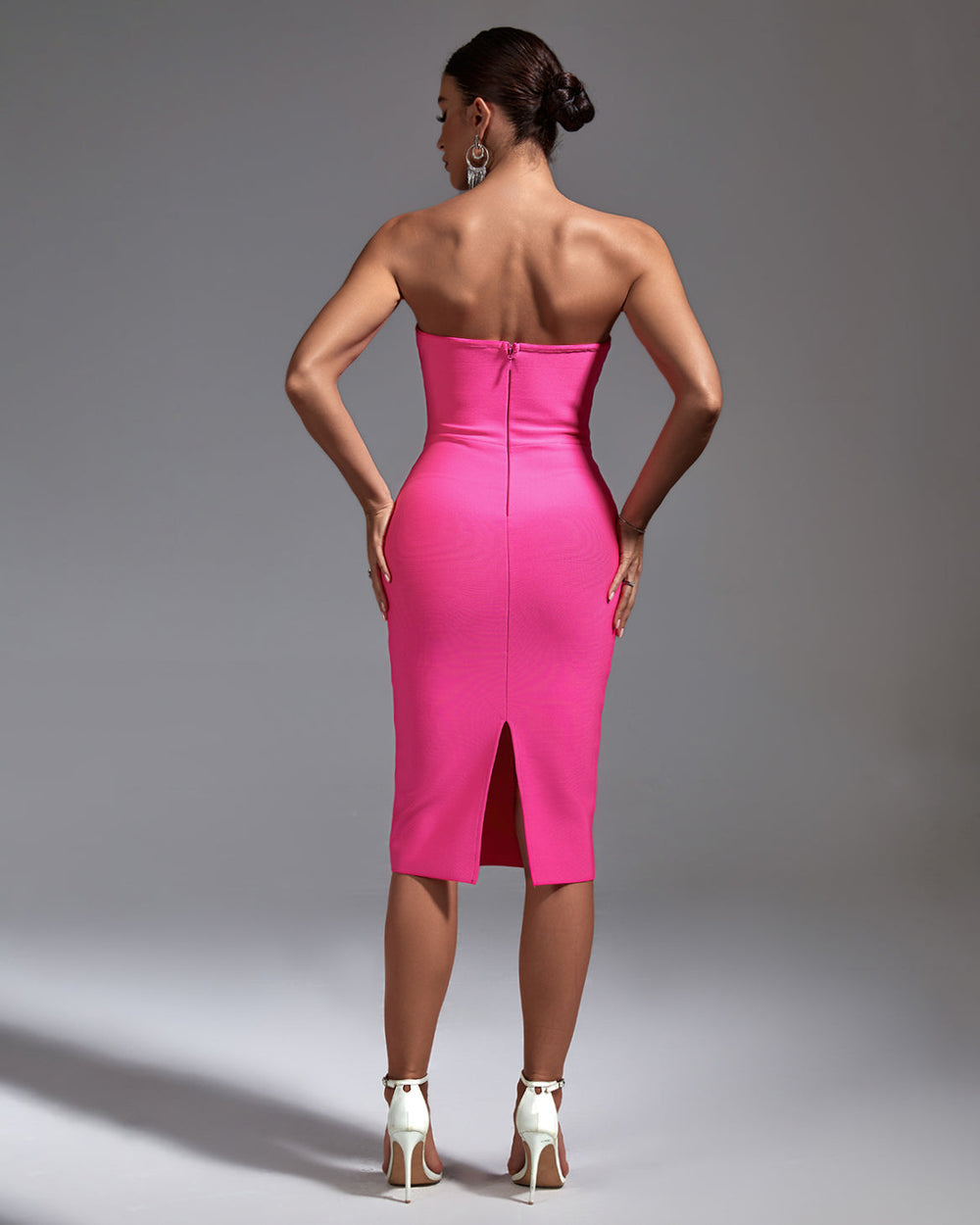 Transform your style with this gorgeous Strapless Sleeveless Plain Midi Bandage Dress! With a hint of modern edge, this stunning dress will have you looking sophisticated and elegant. Its robust fabric brings a powerful durability to the dress, while its strapless and sleeveless design offers lightness and freedom, perfect for any occasion. Make a statement and look stunning in this versatile piece.