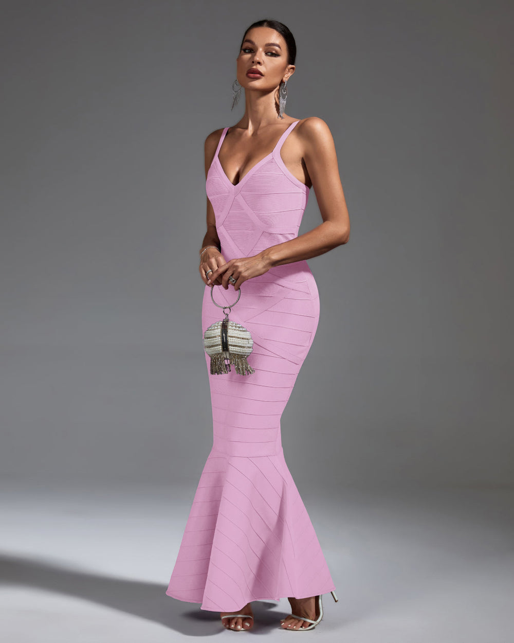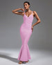 Capture the spotlight in this breathtaking Strappy Fishtail Backless Maxi Bandage Dress! Adorned with an intricate strappy design, this maxi will make your special night unforgettable. Its fishtail backless silhouette flatters your curves for a sophisticated and elegant look. Make your evening extra glamorous with this stunning dress!