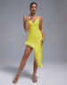 Transport yourself to a world of glamour and sophistication with our Strappy Puffy Chiffon Trim Midi Bandage Dress. The delicate and luxurious chiffon trim adds movement and elegance to this figure-hugging bandage dress. Perfect for special occasions and events, this dress will make you feel like a true fashion icon.