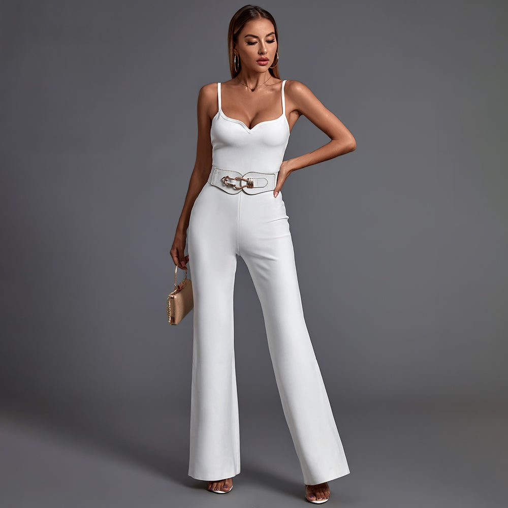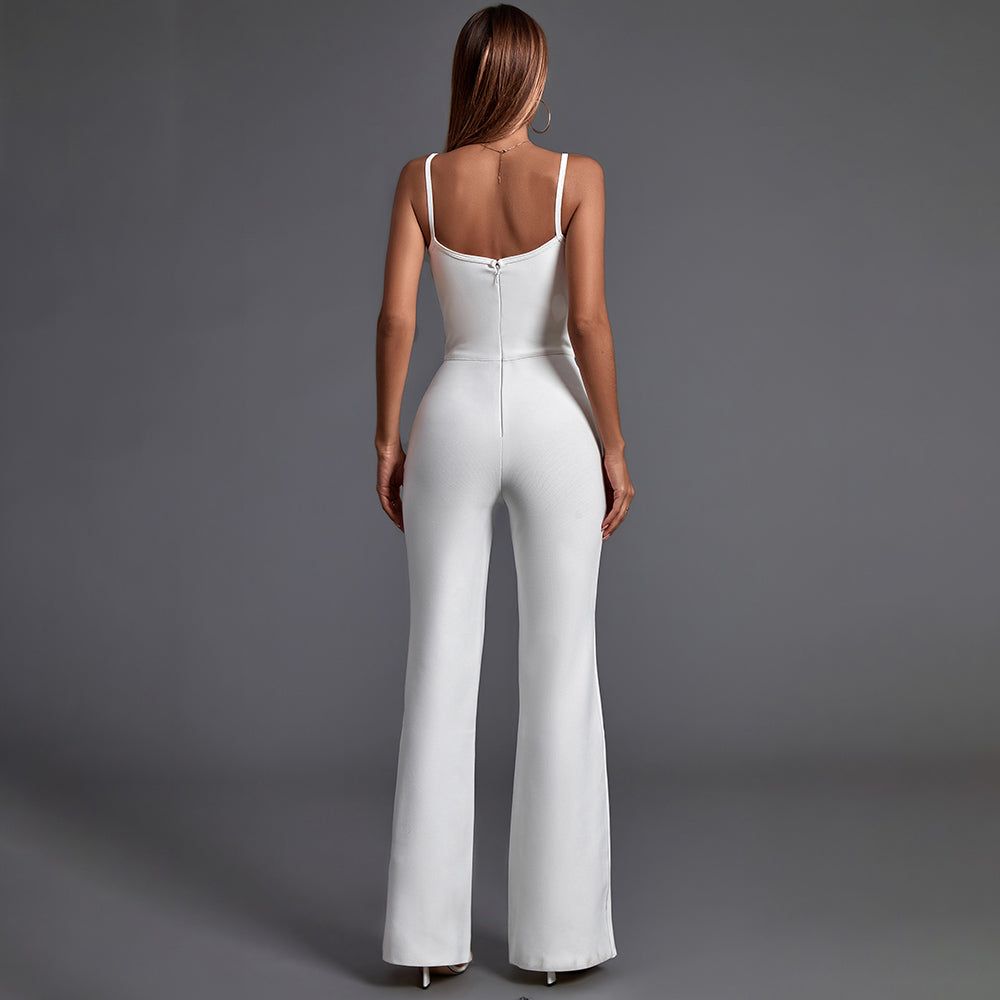 A beautiful Strappy Sleeveless Backless Bandage Jumpsuit, crafted from luxurious fabrics and stylishly designed for timeless elegance. It features a stylish and structurally flawless silhouette, alluringly crisscrossing straps, and a stunning open back. Perfect for any evening occasion or formal event.