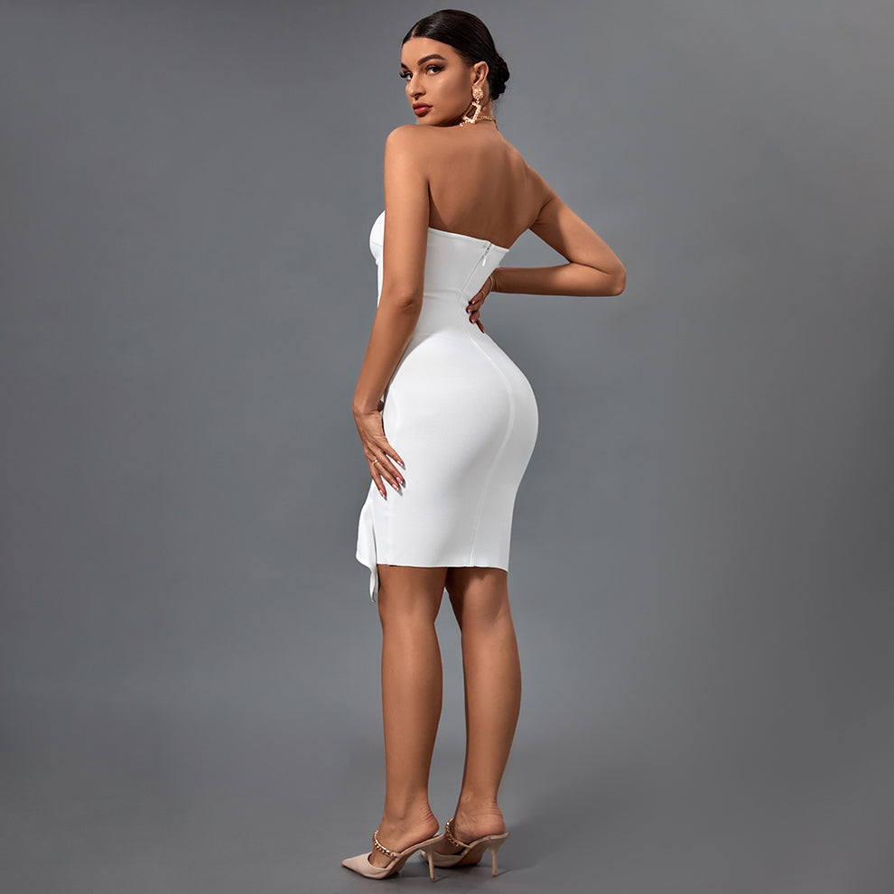 Ensure you make an unforgettable entrance with this Strappy Sleeveless Frill Mini Bandage Dress. Luxuriously crafted from a high-quality blend of fabrics, this dress is sure to make a statement with its delicate frills and flattering shape. Combine it with polished sandals for an elevated look perfect for any party.