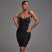 Turn heads in this stunningly elegant strappy sleeveless lace dress. Crafted with quality materials, its soft and stretchy bandage fabric and intricate lace detailing make it perfect for your next special event. Effortless glamour never looked so good!