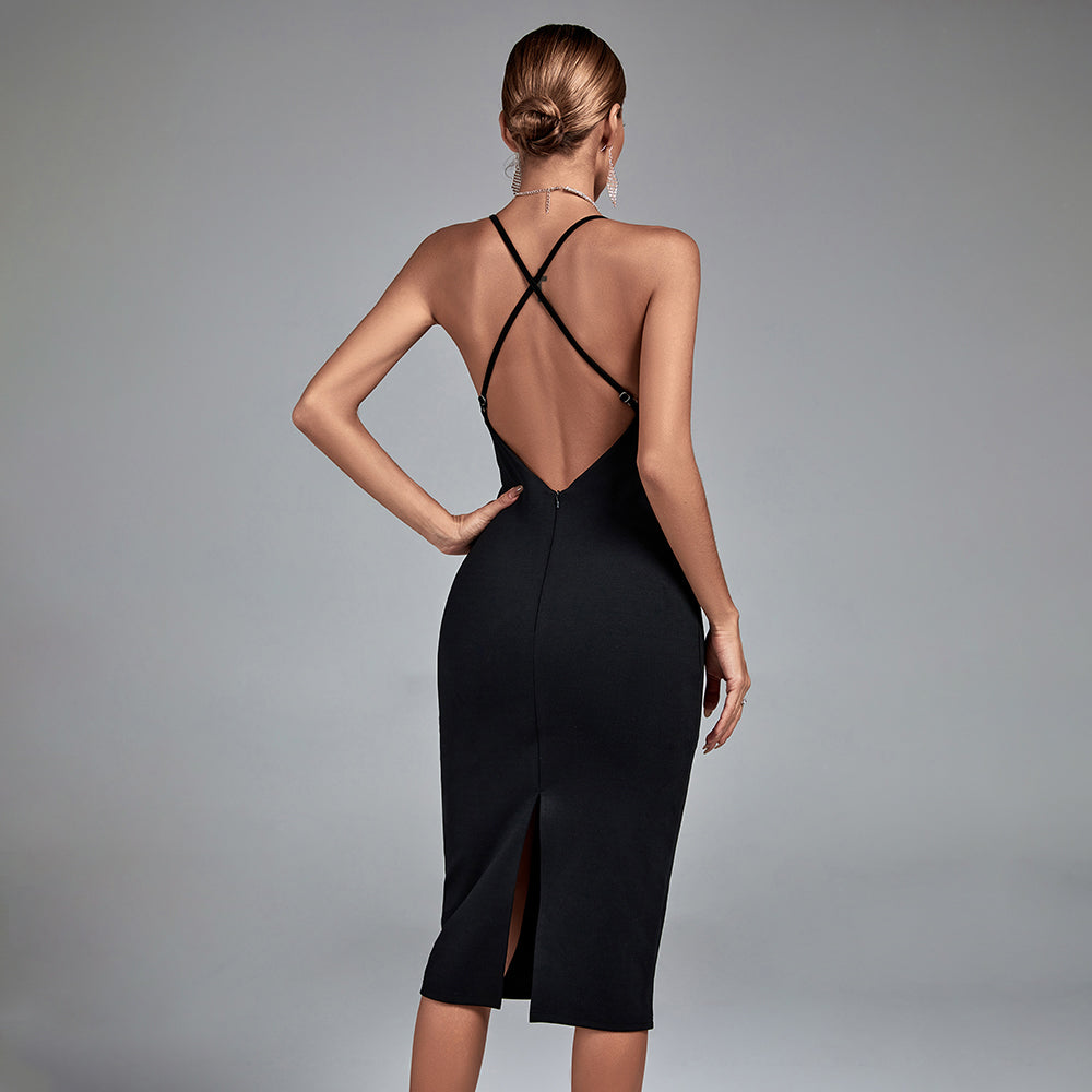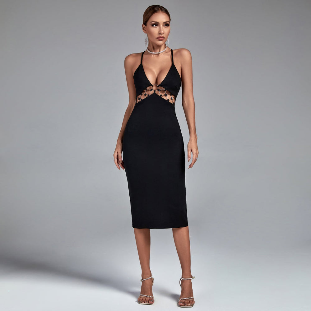 Achieve a stunning look in this Strappy Midi Metal Studded Bodycon Dress. Featuring thin straps for a feminine silhouette and metal stud detailing for added edge, this dress is perfect for adding a touch of glam to your evening wardrobe.