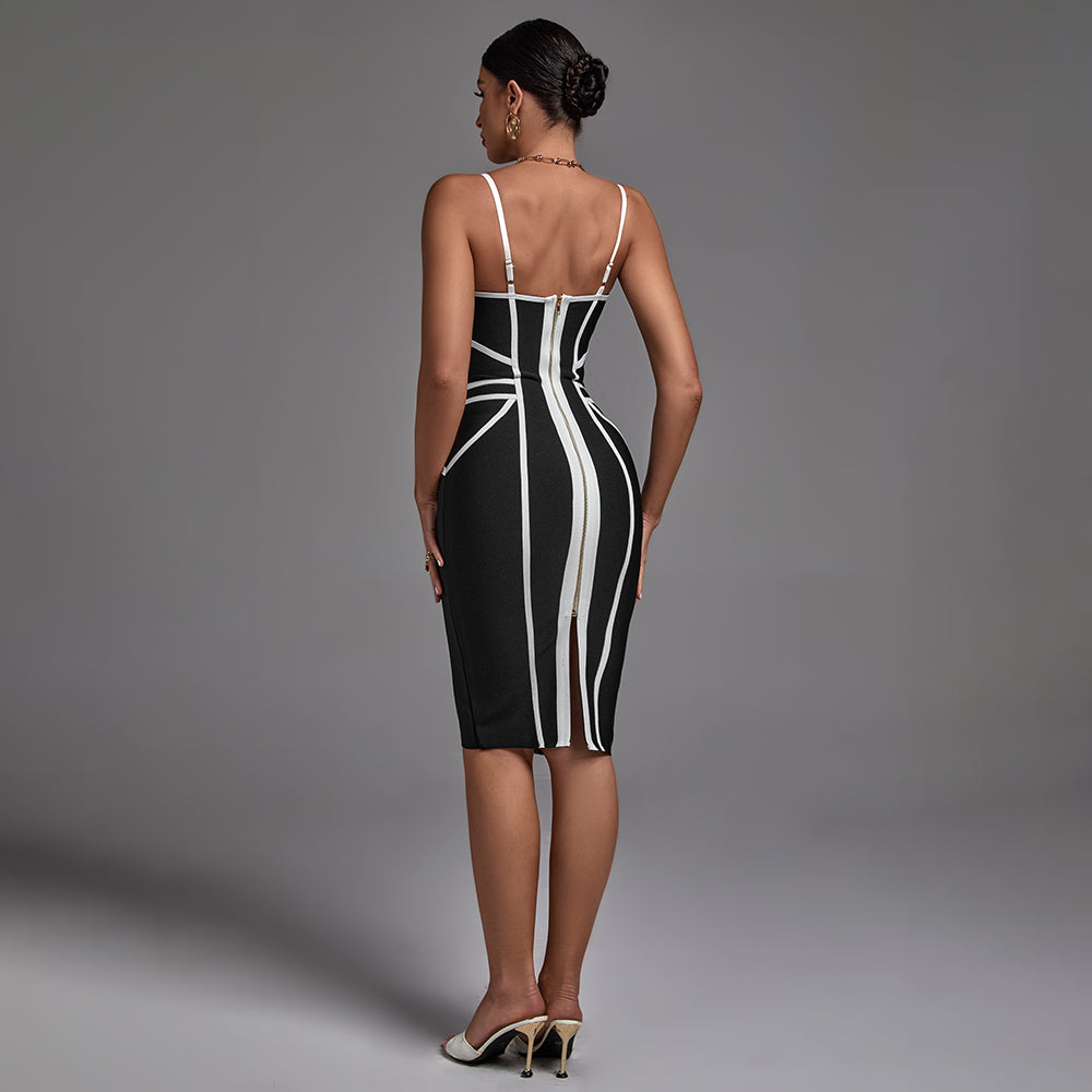 Look stylish and chic in this Strappy Sleeveless Striped Midi Bandage Dress. Featuring a stylish and alluring striped pattern, this dress will make you look polished and fashionable. The strappy design and sleeveless silhouette add to the effortless elegance of this dress that will have you looking your best.