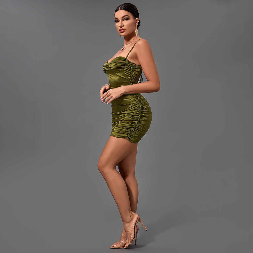 Feel sleek, sophisticated and stylish with this Strappy Sleeveless Wrinkled Mini Bodycon Dress! This beautiful dress is designed to give you a flawless fit, perfect for making a bold, fashionable statement. With its eye-catching crinkled fabric design, you¡¯ll be sure to turn heads!