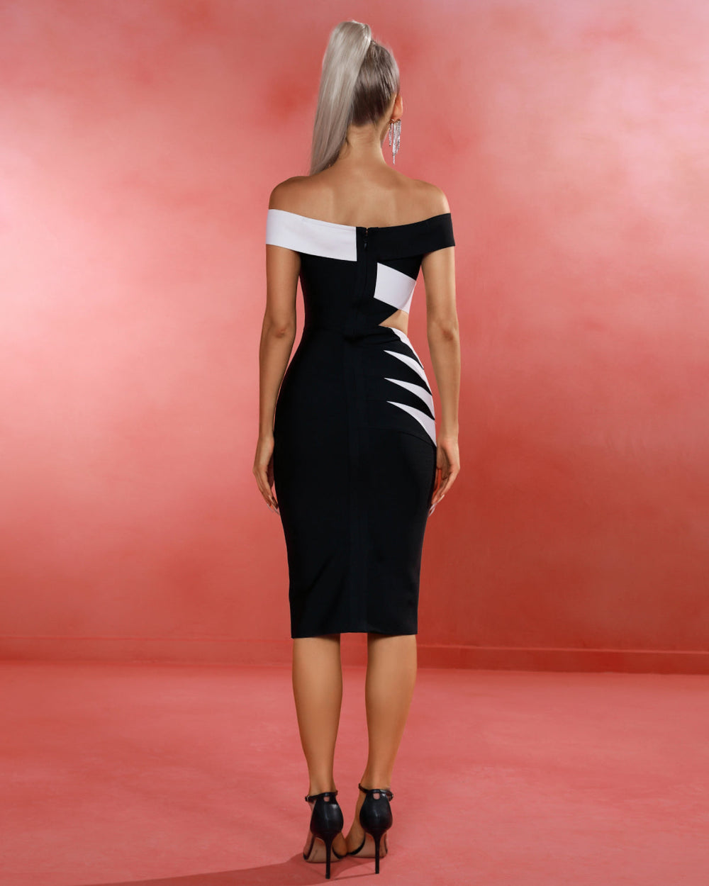 Achieve an ultra-chic look with this Structured Rib Colorblock Midi Bandage Dress. With a flattering midi length, this dress accentuates curves in all the right places, giving you the perfect look for any occasion. Look and feel your best with this stylish, yet comfortable, dress.
