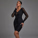 This V Neck Long Sleeve Mesh Bandage Dress provides a trendy, attractive look, with the design emphasizing your figure. It features mesh bandage material for a sophisticated, stylish look, as well as a flattering V neck and long sleeves. Enjoy a effortlessly fashionable look with this unique dress.