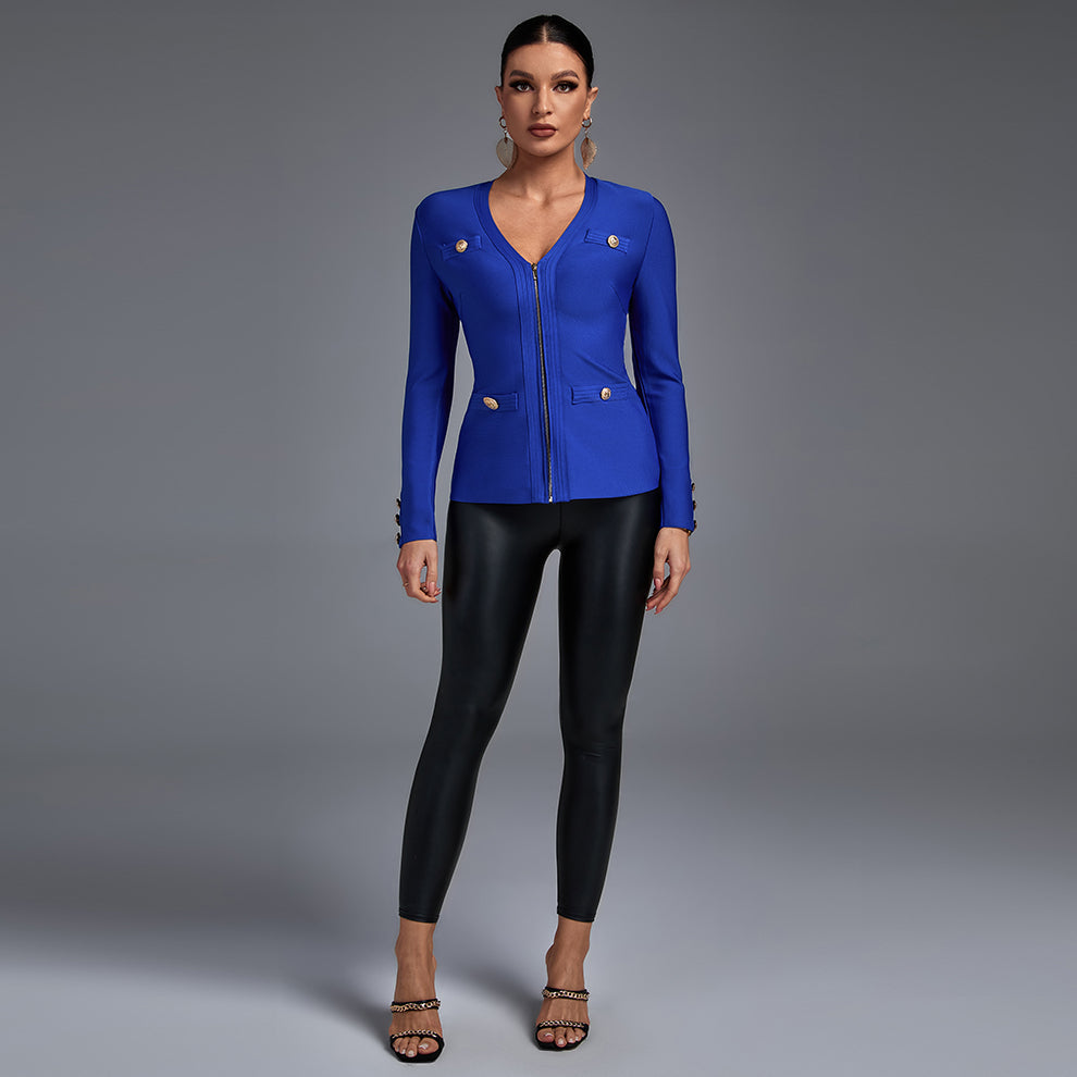 Stay warm and stylish with the V Neck Long Sleeve Zipper Bandage Coat. Made from a lightweight fabric, this versatile coat features a V-neck design and long sleeve zipper bandage to keep your look modern and fashionable. Keeps you warm in cold weather while remaining breathable and comfortable.