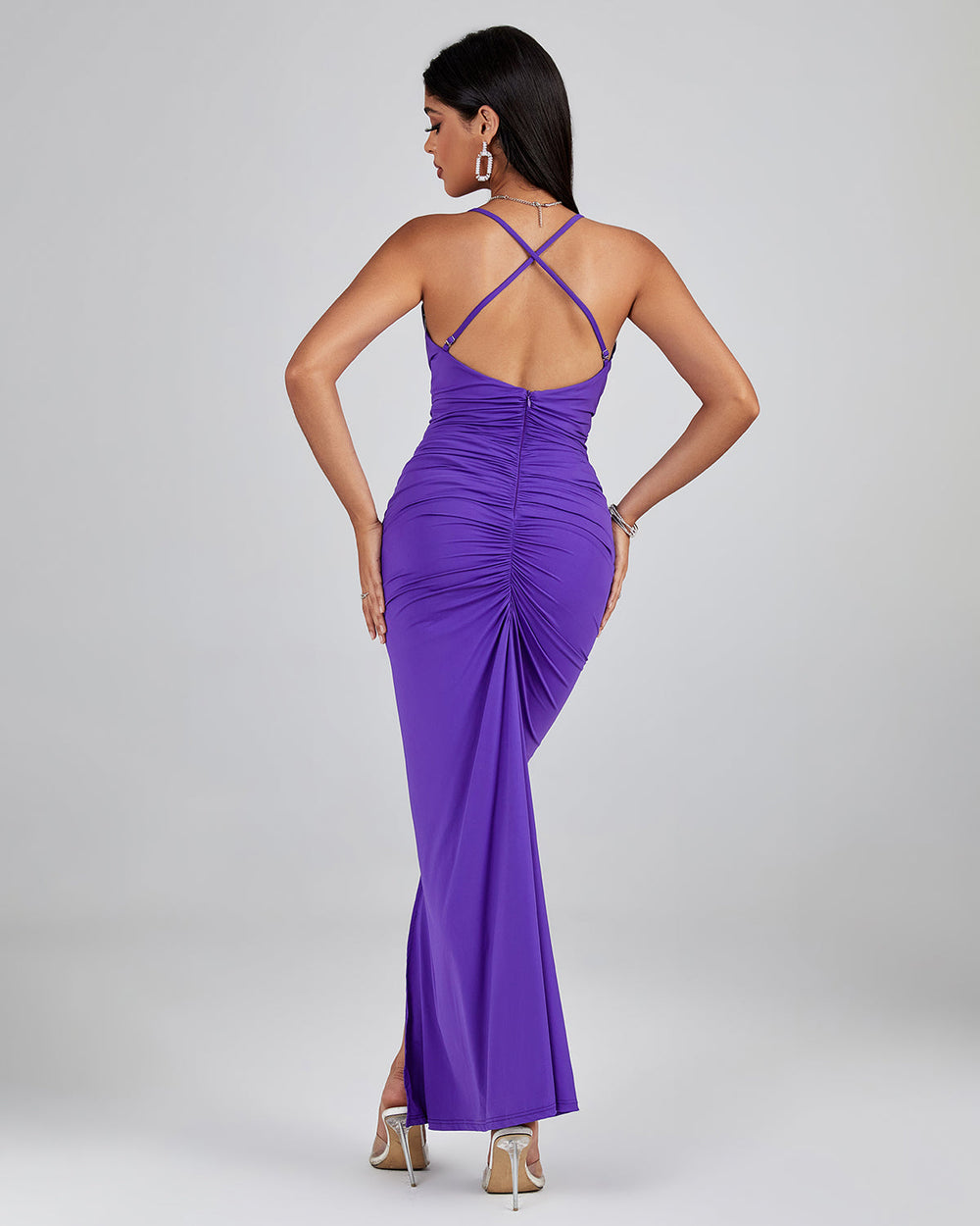 Experience the thrill of looking chic and flaunting your curves with this V Neck Pleated Backless Bodycon Dress! Its flattering V neckline and backless design is the perfect combination of sultry and sleek, giving you maximum style with minimal effort. Step up your wardrobe game and show the world your daring fashionista side. Dare to be bold!