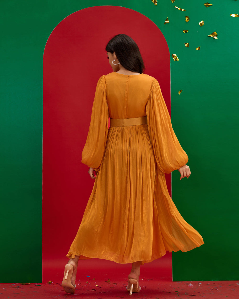 Capture the attention of every room you enter in this stunning V-neck pleated maxi dress. Featuring a timeless cut and beautifully flowing pleats, this dress is sure to make you look and feel like a million bucks. Have an unforgettable night with this gorgeous piece!