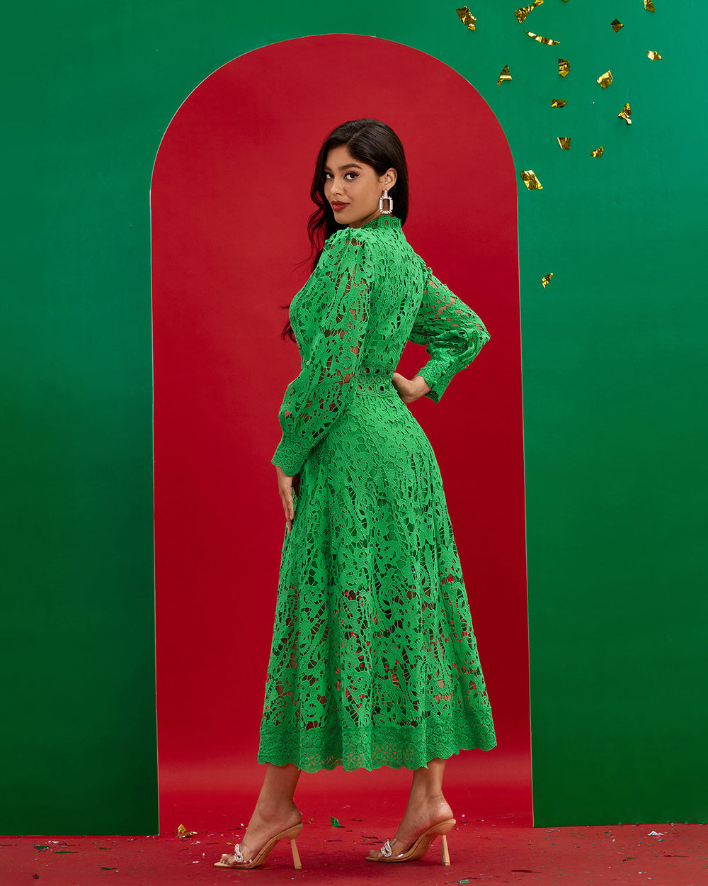 Create a timeless classic look with this Vintage Green Lace Long Dress. Cut from romantic lace fabric, this dress is an elegant addition to any wardrobe. With its exquisite detailing, its long sleeve length and romantic lace pattern, it conveys an aura of exquisite sophistication. The perfect choice for an evening out or special occasion.